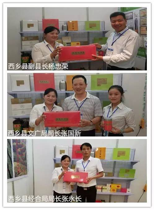西鄉(xiāng)縣副縣長楊忠榮,西鄉(xiāng)縣文廣局局長張國新,西鄉(xiāng)縣經合局局長張永長,蒞臨展會現(xiàn)場與鵬翔茶展位工作人員合影并助力鵬翔茶業(yè)本次展會活動的對外推廣宣傳。