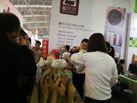 小雨如絲,微冷的天氣也阻擋不了參展觀眾的熱情,每個(gè)展館里人流川流不息。B館BT14-2西鄉(xiāng)展區(qū)陜西鵬翔茶業(yè)股份有限公司展位前更是人如潮涌,咨詢、購買的人絡(luò)繹不絕。本著讓每人每天都能喝到一杯健康茶的理念,我們準(zhǔn)備了多款老百姓喜愛的大眾茶,總有一款適合您。