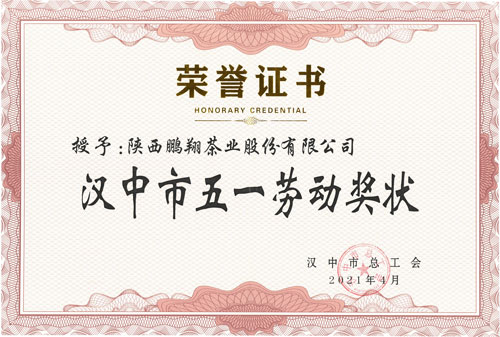 (陜西鵬翔茶業(yè)股份有限公司榮獲“五一勞動獎”。)