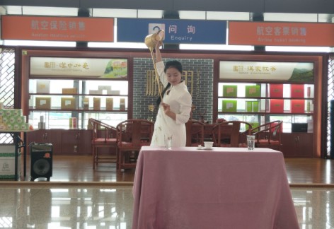 鵬翔茶業(yè)漢中機場品味館位于機場候機大廳,設(shè)有鵬翔有機茶展示區(qū)和品茗區(qū)。通過品茗、泡茶體驗以及茶藝展示等服務(wù)向賓客展示陜茶的品質(zhì)與特點,助力陜茶飛的更快、更遠。